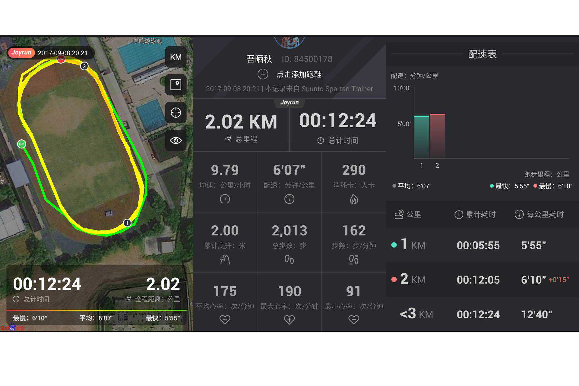 以下是小编将一次运动的数据同步到「悦跑圈」后显示的数据,有精细到单条跑道的运动热图,有详细的心率数值、运动速度,以及每公里的耗时,当然还有关于这些数值的详细图表,假如这些数据不是靠自己制造出来的,一般人可能会看得一脸迷惑,但实际上手后会发现,虽单次存在的心率数值没什么,但如果线性地大量出现,你会发现一直在运动的你心率呈下降趋势,证明了你的心脏供血能力在提升,每公里耗时的记录亦是同样的道理,而这就是运动情况数据化的魅力所在。