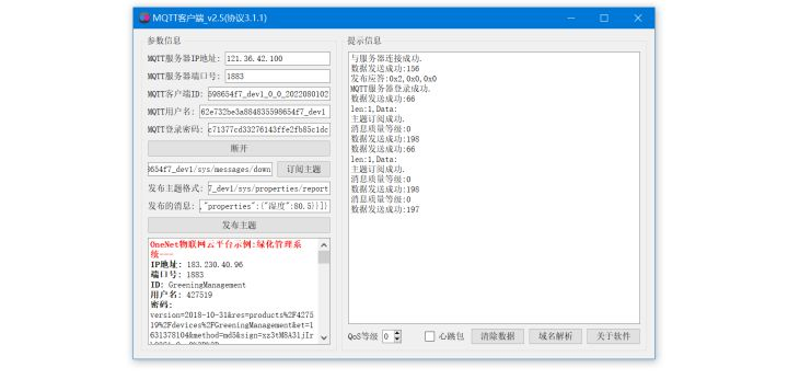 ClientId62e732be3a884835598654f7_dev1_0_0_2022080102Username62e732be3a884835598654f7_dev1Password13483ebeadd786ea107527a3c92c5463a8f3c71377cd33276143ffe2fb85c1dc4.5MQTT主题订阅与发布格式