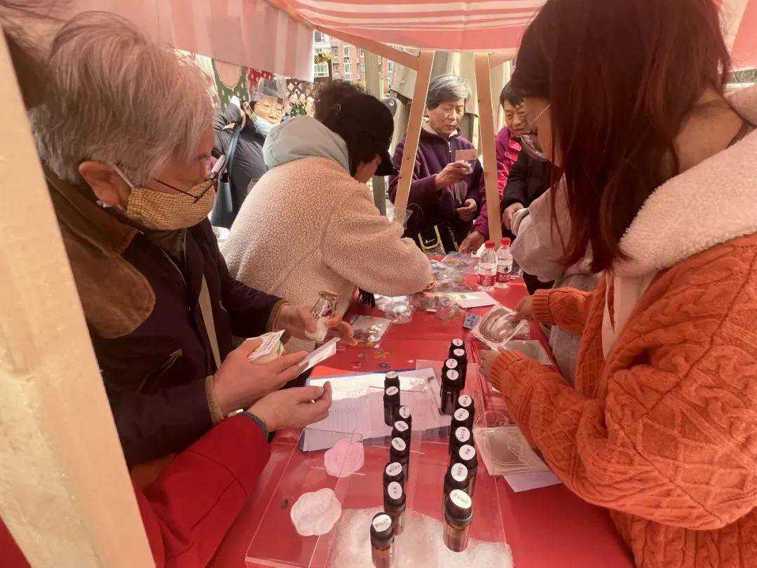 对面的多样花香摊位则在派送压花书签和花草香水,还一边宣传花草制品的知识,教授居民如何在家制作一枚简易书签。常女士带着3岁的小孙女前来,逛得很开心。“现在的小朋友缺少接触大自然的机会,这个活动对他们来说,是一个小窗口,很有意义。”