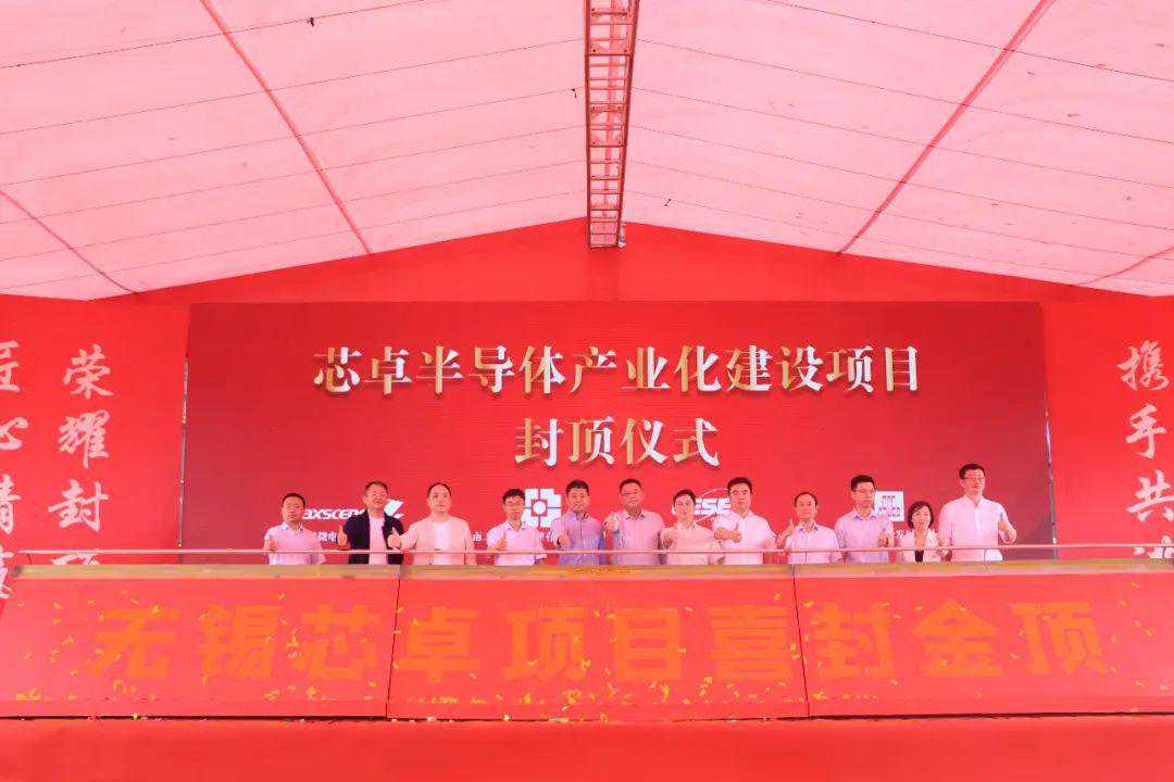 6月26日,中电二公司承建的EPC总承包芯卓半导体项目封顶仪式隆重举行!无锡市滨湖区市发展改革委主任郑天羽,科技局局长华兆哲,工信局局长杨志清,胡埭镇人民政府镇长姚琛,江苏卓胜微电子股份有限公司董事、副总经理冯晨晖,中国电子系统工程第二建设有限公司总经理杨良生、高级副总经理徐义强,中建一局集团建设发展有限公司董事、副总经理胡蓬,上海振南工程咨询监理有限责任公司总经理周林、副总经理王竣毅等领导出席此次仪式。