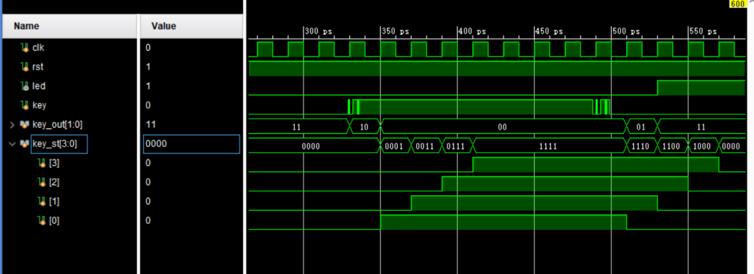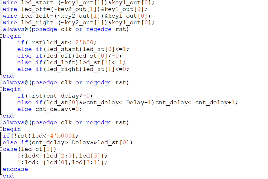 拓展:使用4个按键控制流水灯的四种状态,关闭,开启,左移,右移。按键的控制和以上类似,根据各个按键值的判断输出不同的流水灯控制信号。