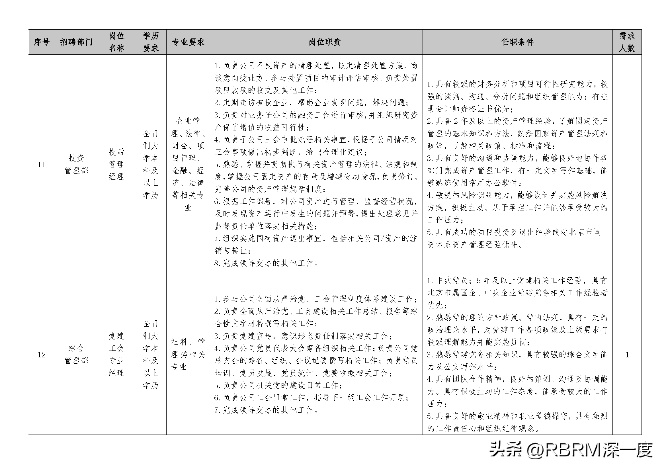 (三)岗位职责及任职条件