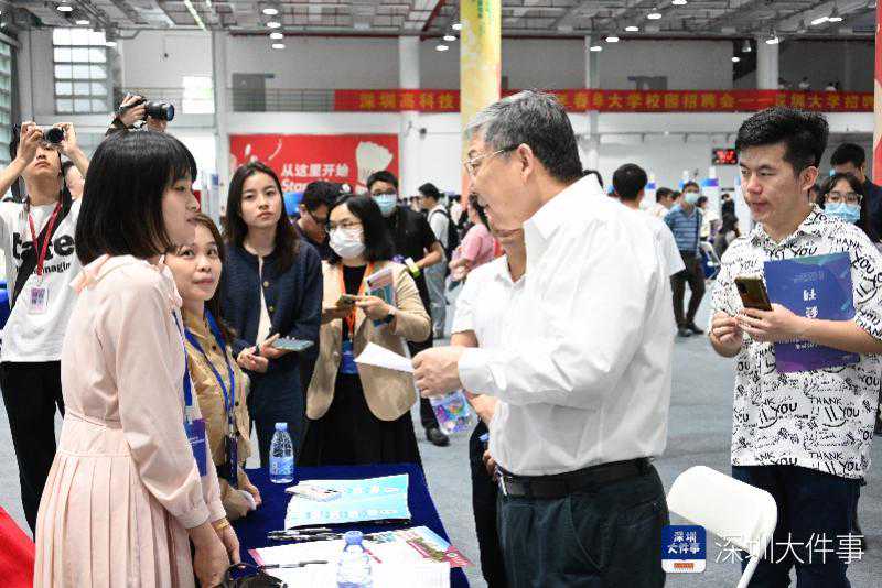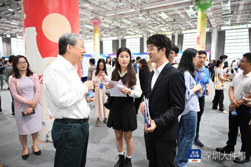 招聘会当天下午,深圳大学党委书记李清泉来到招聘会现场,与招聘单位和部分求职学生交流。