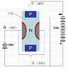 上面图中,下边的p型中间一个窄长条就是沟道,使得左右两块P型极连在一起,因此mos管导通后是电阻特性,因此它的一个重要参数就是导通电阻,选用mos管必须清楚这个参数是否符合需求。