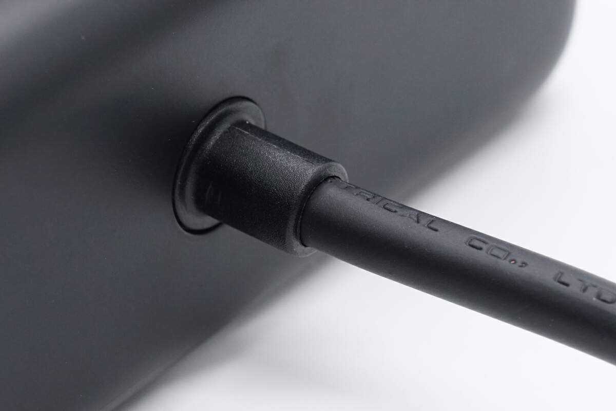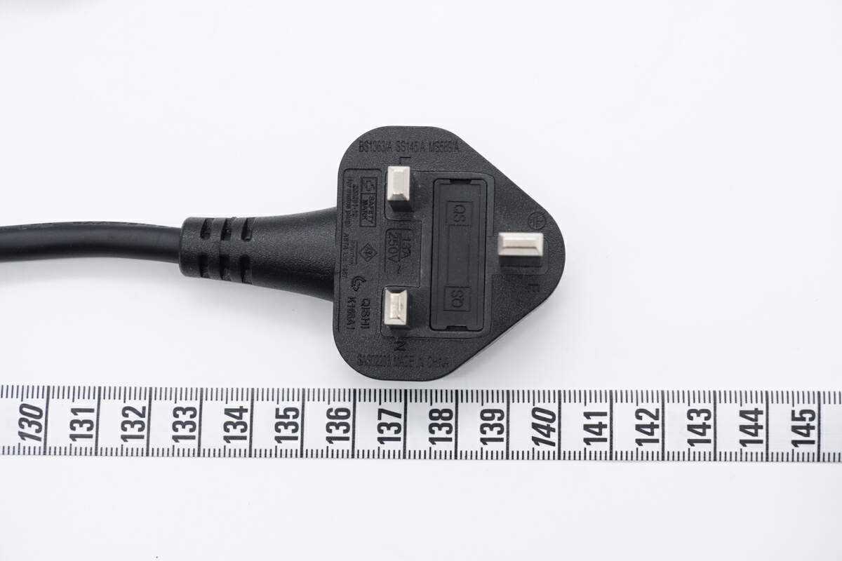 插头在经典三角形造型基础上将两侧做了竖直处理,同时表面磨砂,方便用户插拔。顶面设计有FUSED字样,表明插头内置有保险丝,发生意外不会损坏电源线以及插座本身,可以将损失降到最低。