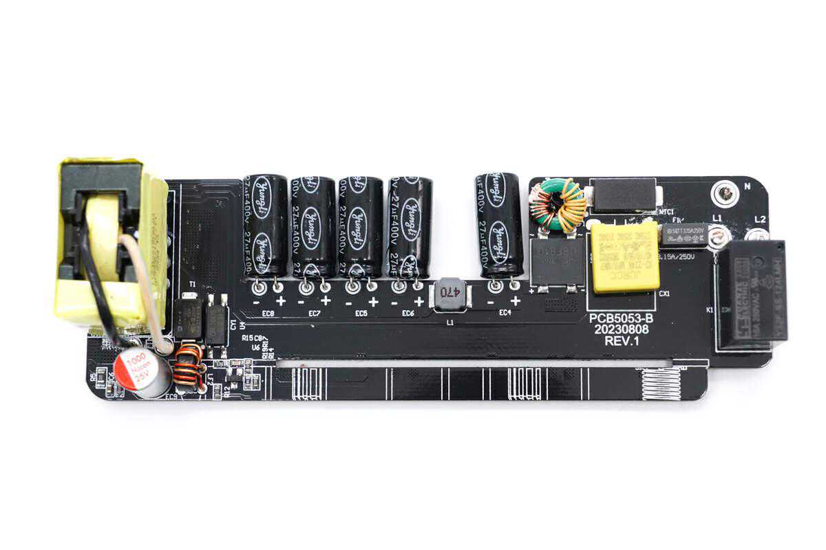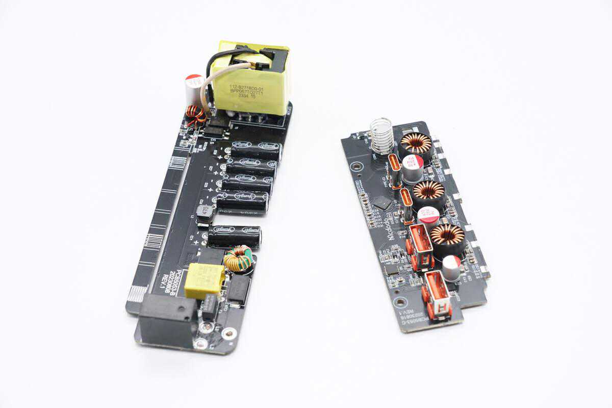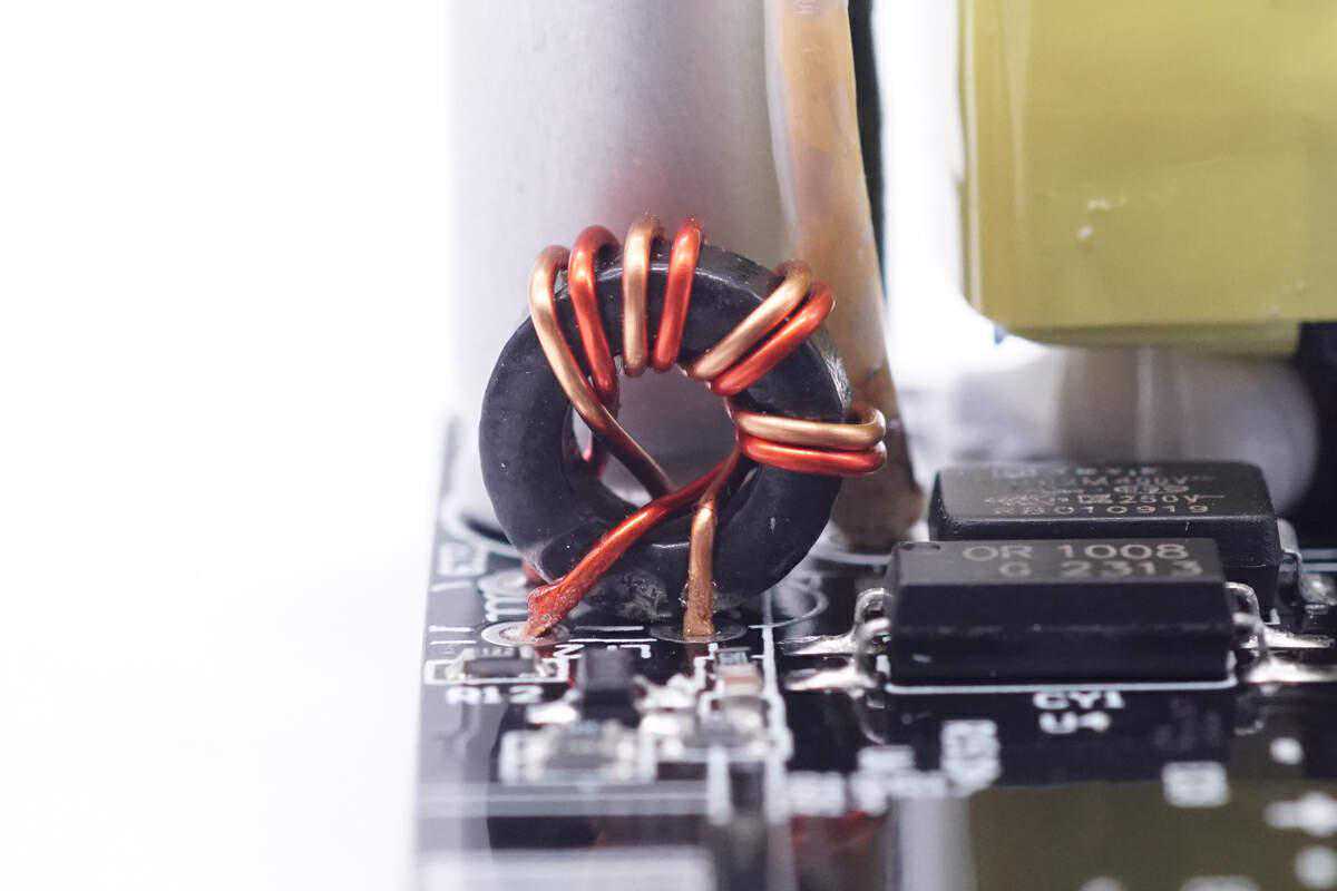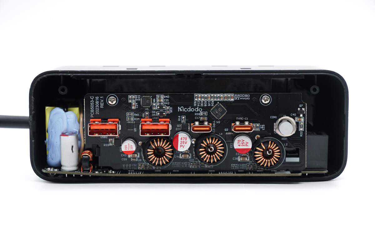 壳体内部一览,内部PCB焊接USB-A母座,USB-C母座和降压电感。