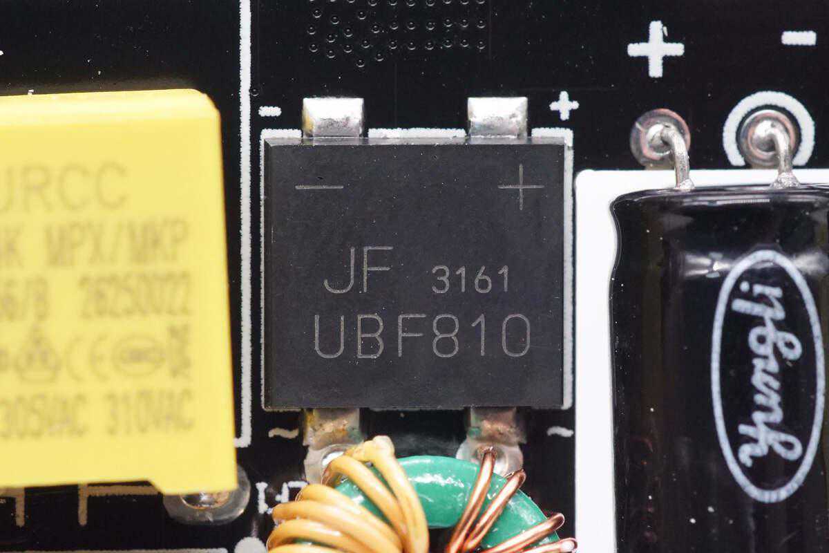 整流桥来自晶恒,型号UBF810,规格为8A1000V。