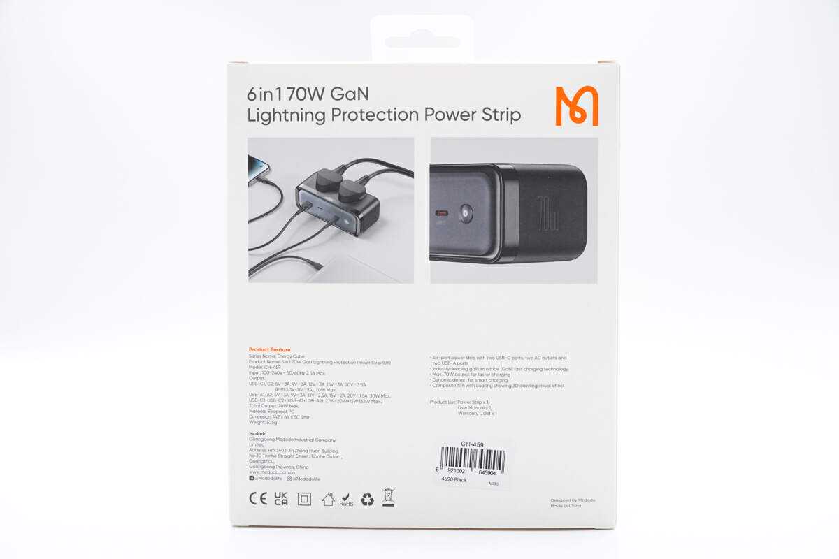 包装内含麦多多70W六合一氮化镓快充插座、使用说明书以及保修卡。
