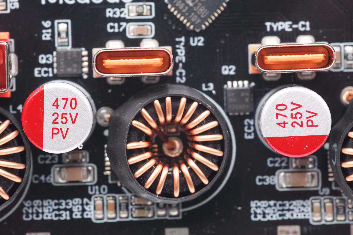 对应两路USB-C接口的滤波电容规格为470μF25V。