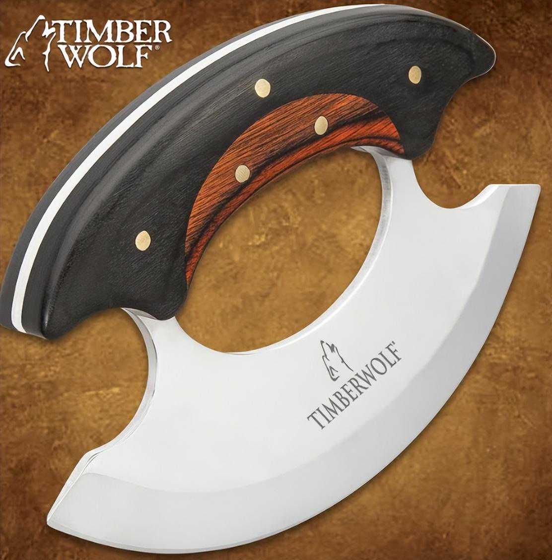 这一款户外刀的原型来自于阿拉斯加用于野营和烹饪的乌鲁刀,该刀完完全全就是一个圆环状的拳刃设计,拥有12厘米的如同斧头一般的弯曲刃口,刃口采用大平磨的方式进行开刃,锋利程度足以把冰冻的肉块片薄薄的肉片,其程度足以和兰州拉面里面的牛肉片相提并论,当然了前提是必须拥有足以媲美资深大师傅的刀工,要是像某轮胎品牌的餐馆那样的橱子可是没这水平的。