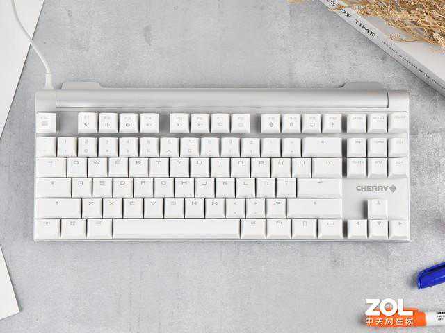 大家可以仔细欣赏一下的键帽,这基本上是笔者见过最纤细的二色注塑透光字符。不难看出,为了实现字符透光,键帽由白、透明两种材料组合而成。而字体越纤细,则工艺难度越高,CHERRY为了实现这样秀美的字符绝对花费了很多功夫。