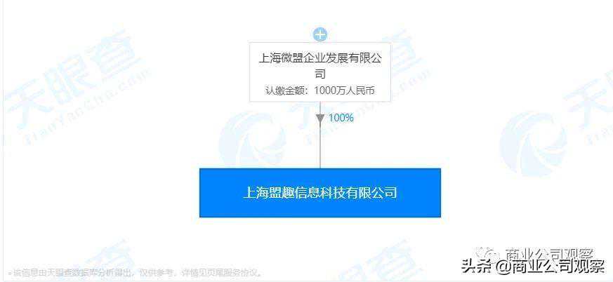 天眼查显示的股权穿透图信息披露,上海盟趣信息科技有限公司目前由微盟100%控股。
