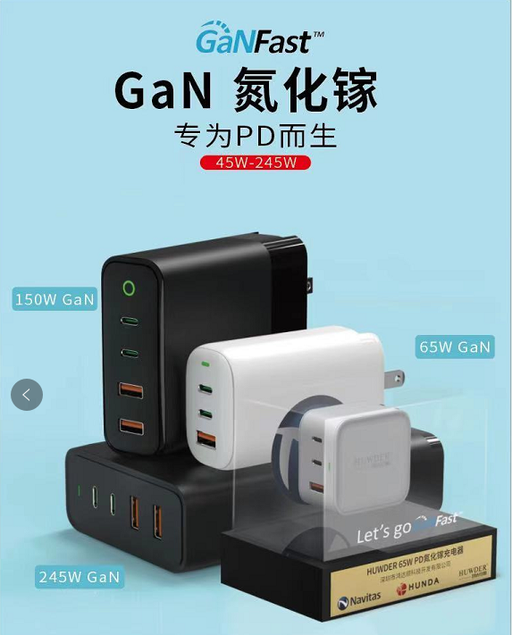 A34展位:深圳市鸿达顺科技发展有限公司1、鸿达顺30W-300W氮化镓快充充电器