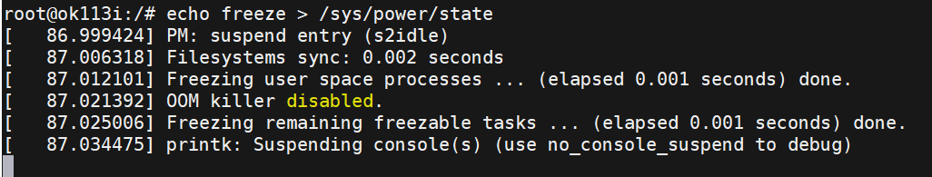 (2)echofreeze/sys/power/state进入freeze模式: