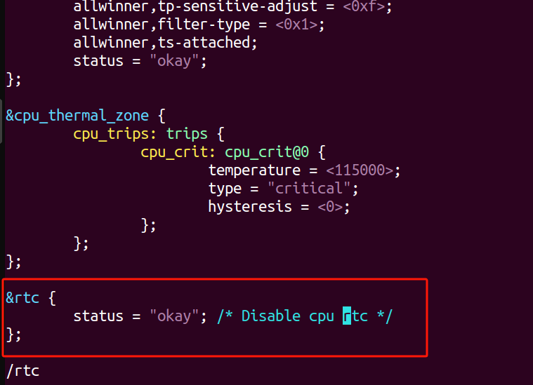 配置完成后保存,然后修改设备树文件,打开内部RTC功能。
