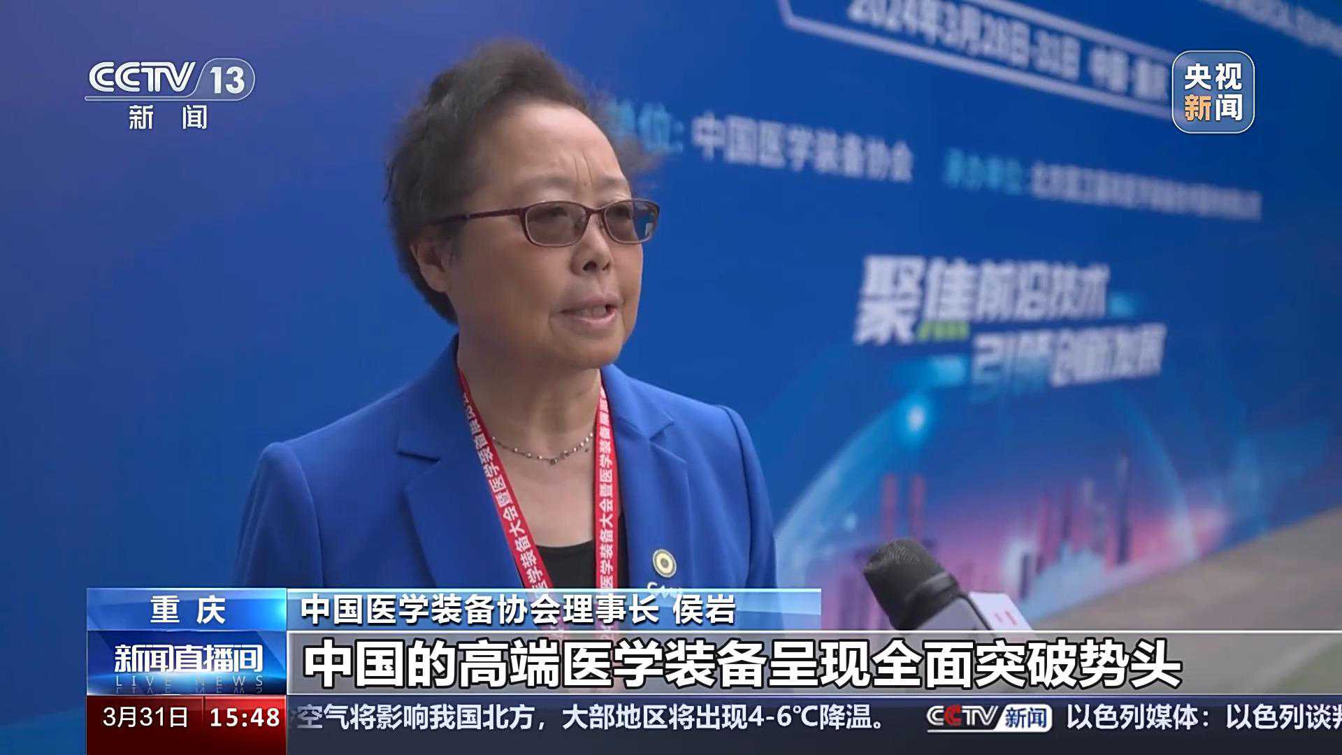 中国医学装备协会理事长侯岩:中国的高端医学装备呈现全面突破的势头,国产的医学装备近些年在医疗卫生机构的占比大幅度地增长,有力地支持了卫生健康事业的发展。