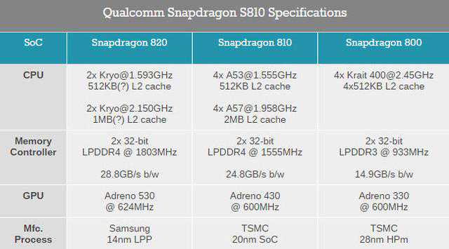 处理器方面国内上市版采用骁龙820处理器,速度升级30%,骁龙820回归自主Kryo架构,Kryo拥有4个核心,每核支持最高2.2GHz的处理速度,搭载全新的Adreno530GPU,支持LPDDR4内存、网络,并采用最新14纳米FinFET工艺制程。说这么多不少网友已经看晕了,其实结论就是:与骁龙810处理器相比,KryoCPU在性能方面将带来最高达2倍的提升,功耗最高下降2倍。