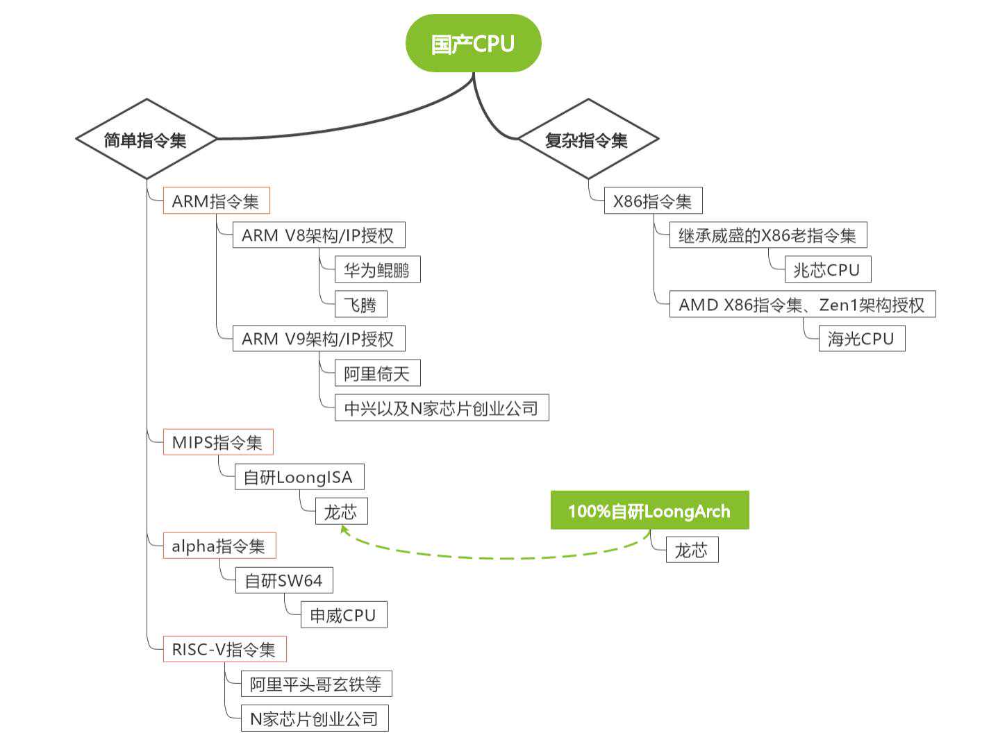龙芯早期用的是MIPS指令集,后来自己拓展了LoongISA指令集,去年龙芯干脆干了一票大的,抛弃掉MIPS,100%自研出了一个LoongArch指令集,相当于自己创造了一套26个字母出来,以后组单词,写文章,随便自己玩。