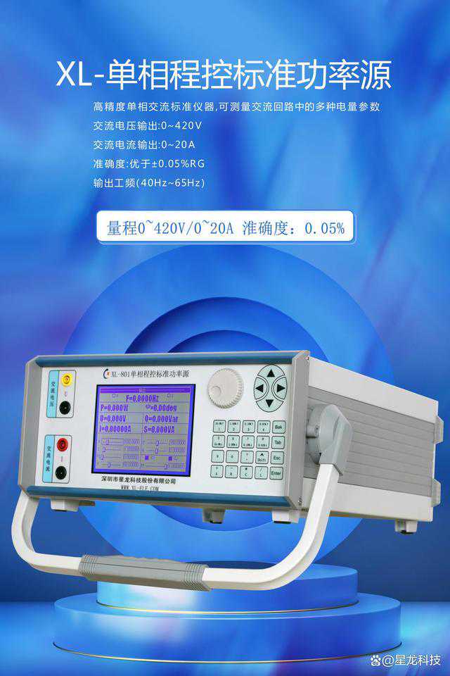 1.XL-801单相程控标准功率源量程:420V/20A准确度:优于±0.05%RG频率:45~70Hz,相位0~360度任意可调;
