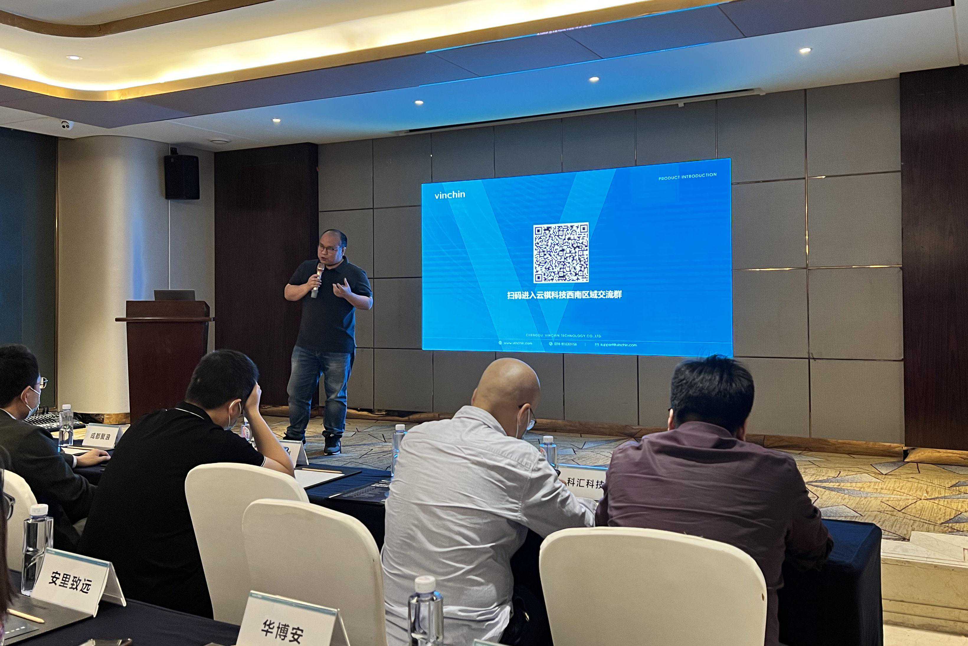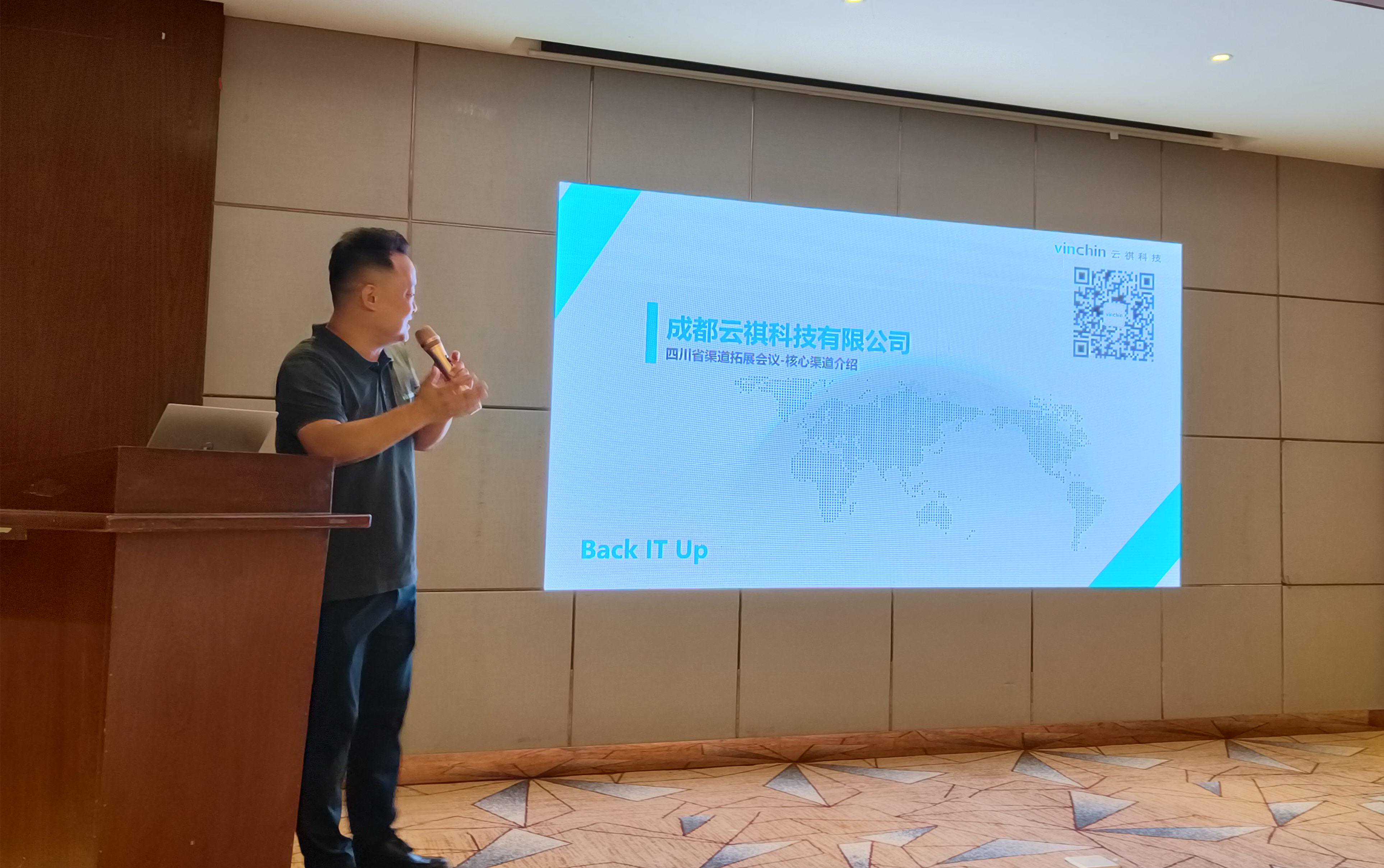 随后,由云祺科技西南区域销售总监冯威先生带来《西南区域渠道政策宣讲》,介绍了四川区域团队人员构成、产品形态以及产品授权方式,谈到了具体的渠道合作伙伴政策以及未来的合作方向,表示将与在座的合作伙伴共同携手,砥砺前行,制胜未来。