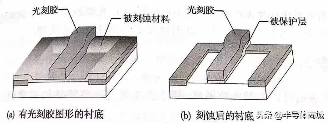 包括几方面刻蚀参数:刻蚀速率、刻蚀剖面、刻蚀偏差、选择比、均匀性、残留物、聚合物、等离子体诱导损伤、颗粒玷污和缺陷等。刻蚀是用化学或物理方法有选择的从硅片表面去除不需要的材料的过程。刻蚀的基本目标是在涂胶的硅片上正确的复制掩模图形。有图形的光刻胶层在刻蚀中不受腐蚀源显著的侵蚀。这层掩蔽膜用来在刻蚀中保护硅片上特殊区域而选择性的刻蚀掉未被光刻胶保护的区域如图一。