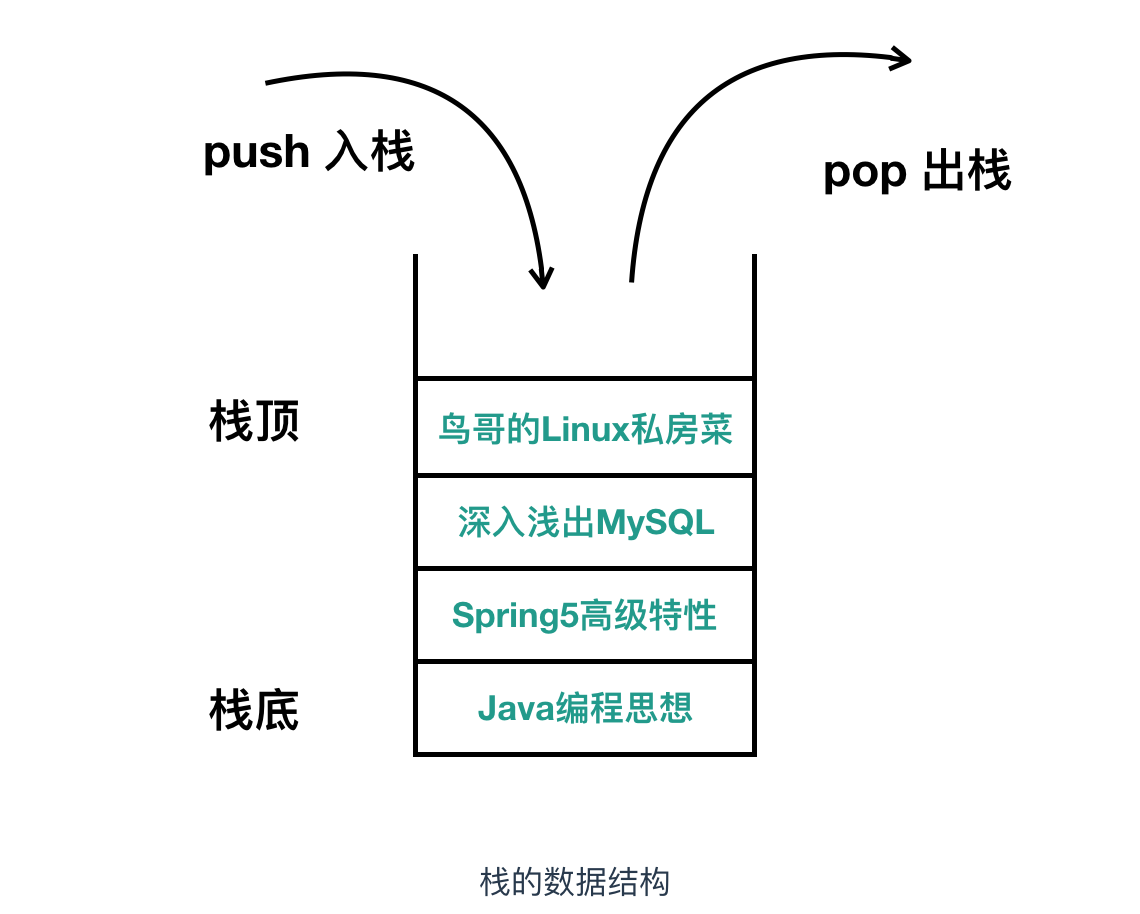 它就像一个大的收纳箱,你可以往里面放相同类型的东西,比如书,最先放进收纳箱的书在最下面,最后放进收纳箱的书在最上面,如果你想拿书的话,必须从最上面开始取,否则是无法取出最下面的书籍的。