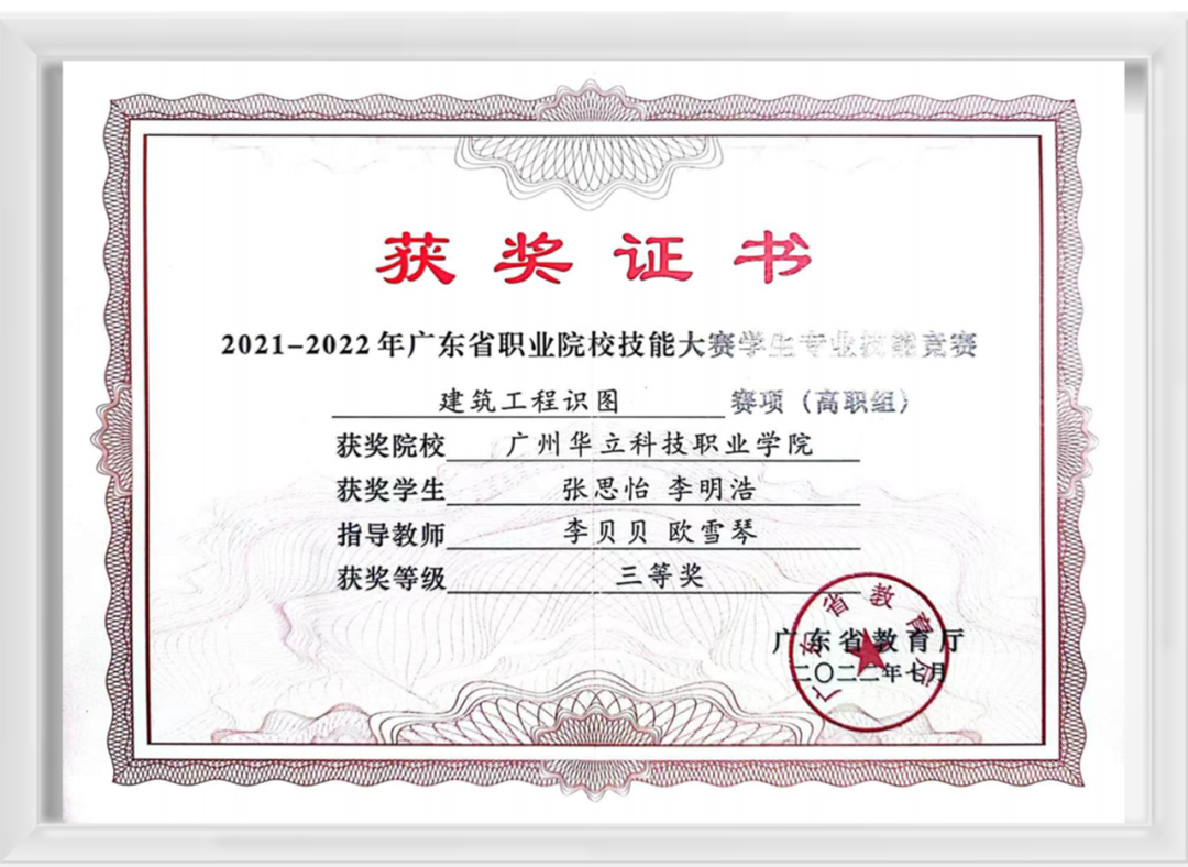 •2021-2022年度广东省职业院校技能大赛建筑工程识图赛项三等奖;