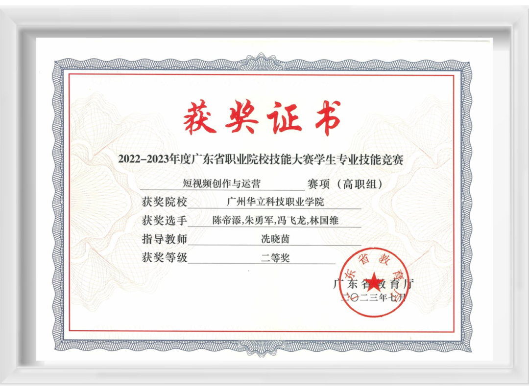 •2021-2022年度广东省职业院校技能大赛全矩阵数字内容制作及运营技术赛项一等奖;