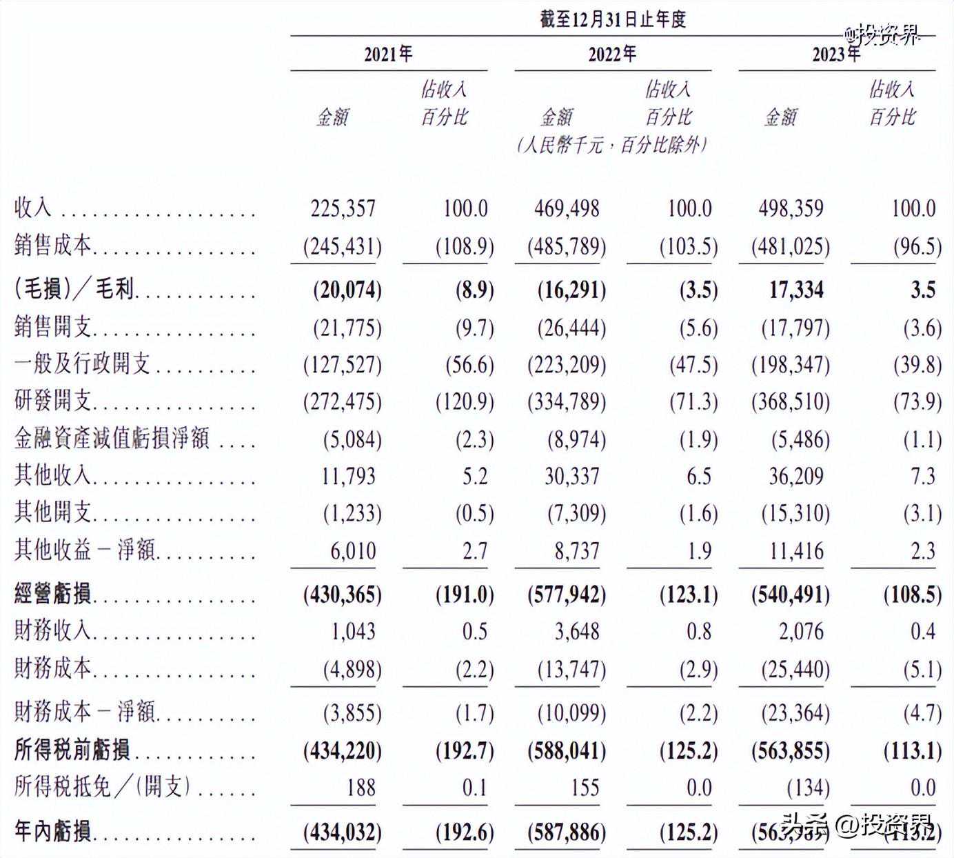 外界最关心的业绩方面,据招股书显示,2021年至2023年,纵目科技的营收分别为2.25亿元、4.69亿元和4.98亿元。但随着营收增长,亏损也在持续扩大,相应期间的经调整净亏损分别为3.82亿元、4.77亿元和5.16亿元。