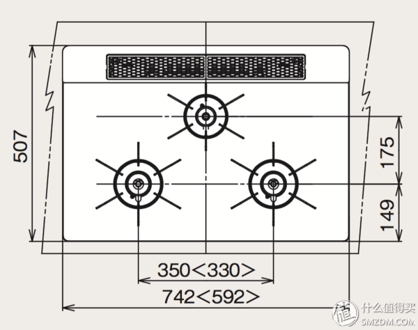 先来说嵌入式。不同于国内各个品牌甚至各个系列都不同的面板尺寸,日式燃气灶在标准化上做的相当好,所有嵌入式灶台的开孔尺寸均为560×460mm。在面板尺寸上,各家也一致定在了60cm和75cm两种。