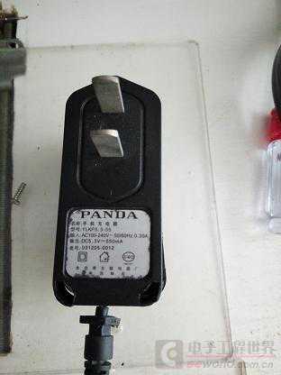 这样的转换器显然是不敢用在单片机上的,于是又找出一个原来熊猫手机5.3V的充电器,见下图: