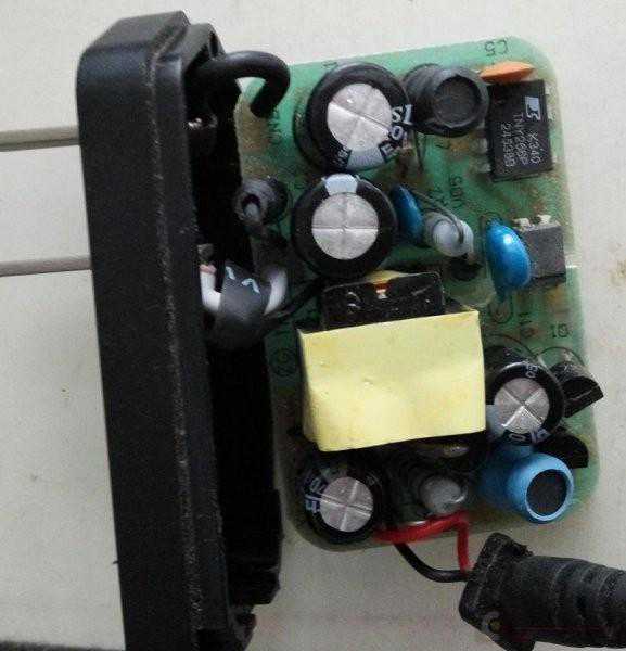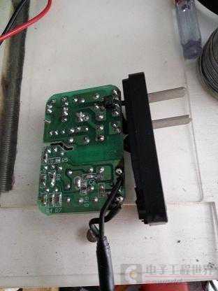 这个电源转换器无法使用,于是又找了一个5V的手机充电器,先拆开检查,如下图: