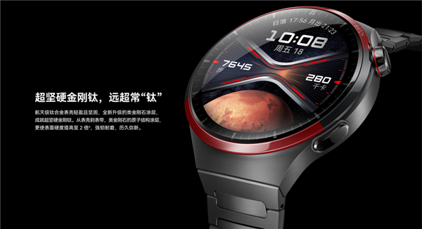 值得一提的是,华为WATCH4Pro太空探索腕表还创新采用了超坚硬金刚钛顶级材质,是华为首款采用金刚钛的智能手表。