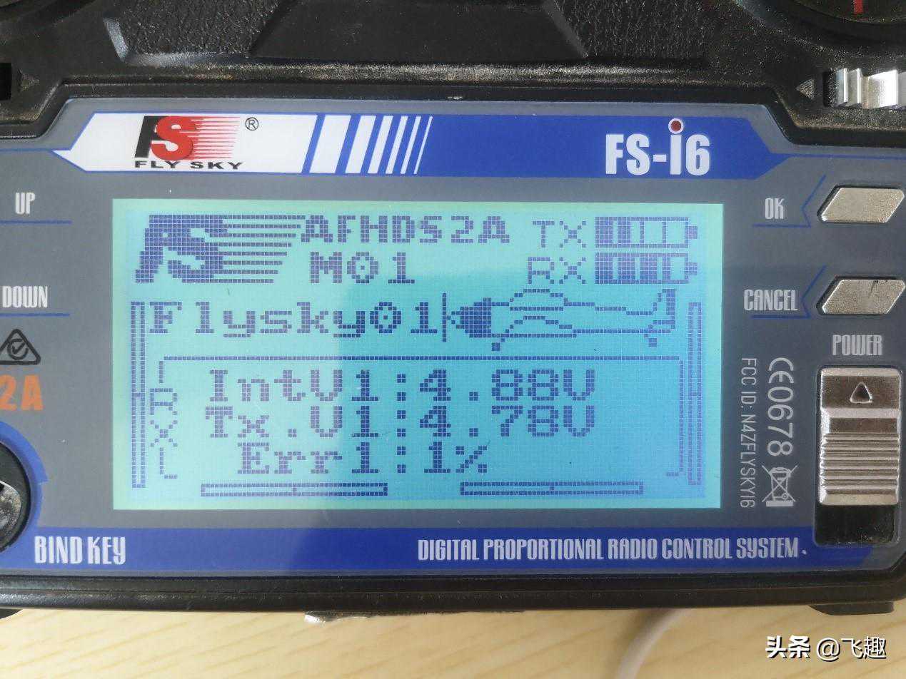 3、接通飞行器电源(给接收机供电),遥控器会短暂显示“RXBindingOK”,之后返回至初始页面