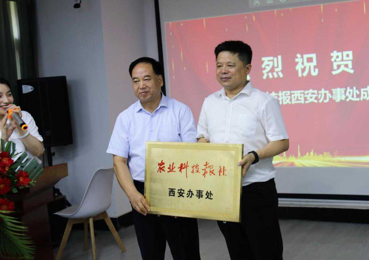 在接牌仪式上,农业科技报党组书记、社长梁孝宏为本报社西安办事处授牌,并为西安办事处负责人赵胜堂颁发聘书。农业科技报党组成员、副社长贺辉宣读了《农业科技报社关于赵胜堂同志任职的通知》。