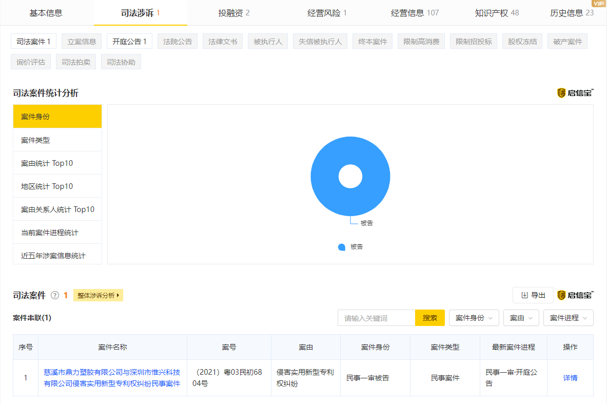 一、在APP“企查查”中,深圳市惟兴科技有限公司作为诉讼当事人、行政处罚当事人,企业风险信息仍旧有如下公示记录(部分截图):