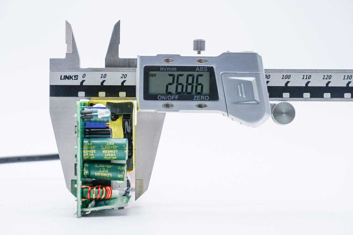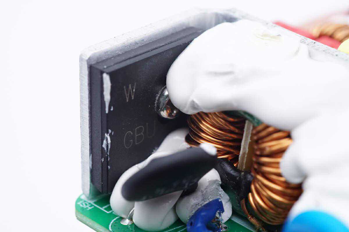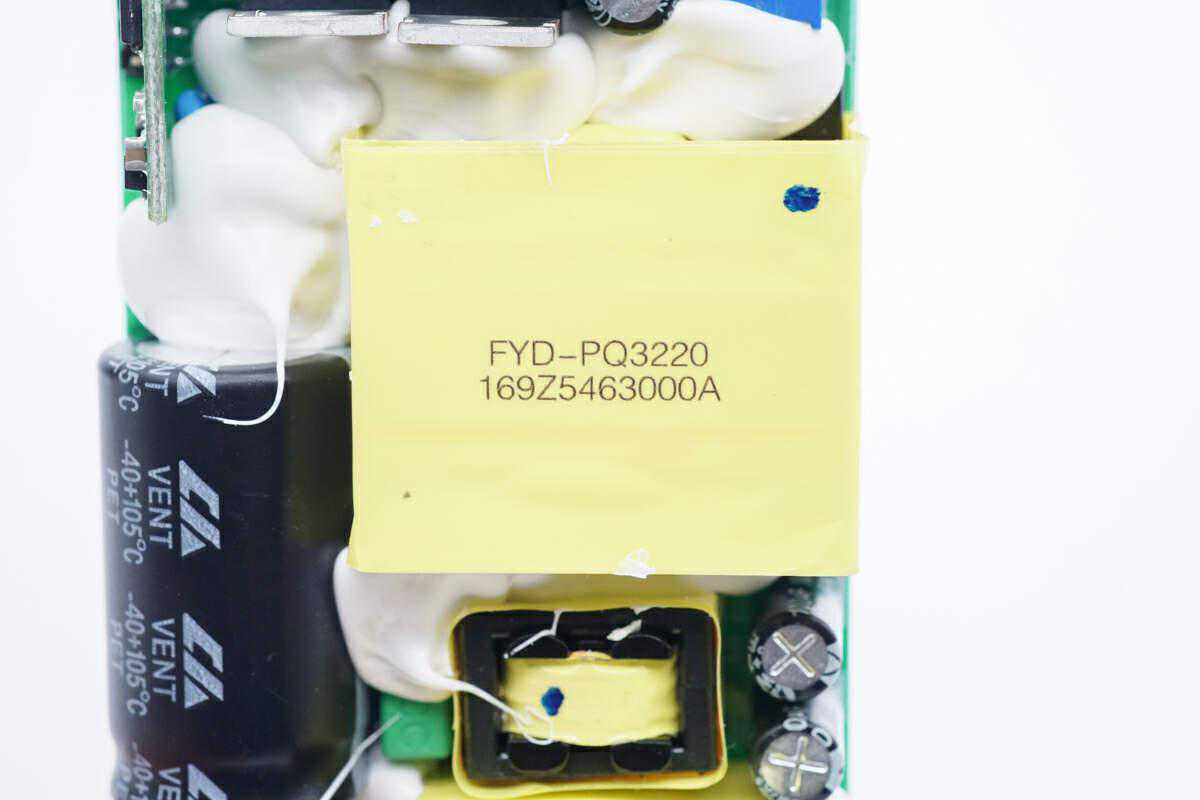 拆下卡扣固定的散热片,内部PCBA模块包裹黑色麦拉片绝缘。