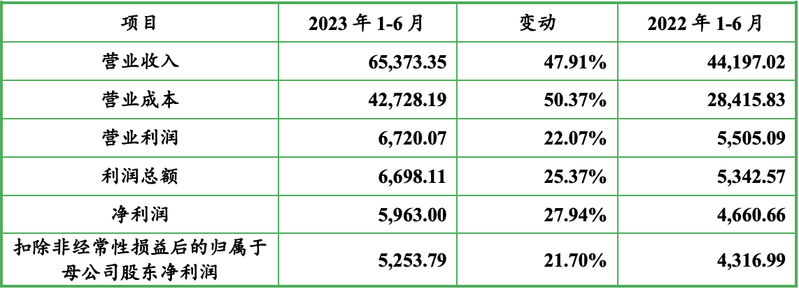 另据招股书披露,森峰激光2023年上半年的营收为6.54亿元,较2022年同期的4.42亿元增长47.91%;净利润5963.00万元,较2022年同期的4660.66万元增长27.94%;扣非后净利润5253.79万元,较2022年同期的4316.99万元增长21.70%。