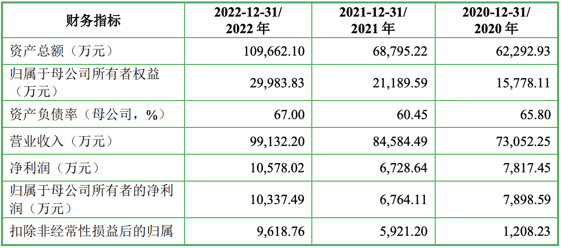 2020年、2021年和2022年,森峰科技的营业收入分别为7.31亿元、8.46亿元和9.91亿元,净利润分别为7817.45万元、6728.64万元和1.06亿元,扣非后净利润分别为1208.23万元、5921.20万元和9618.76万元。