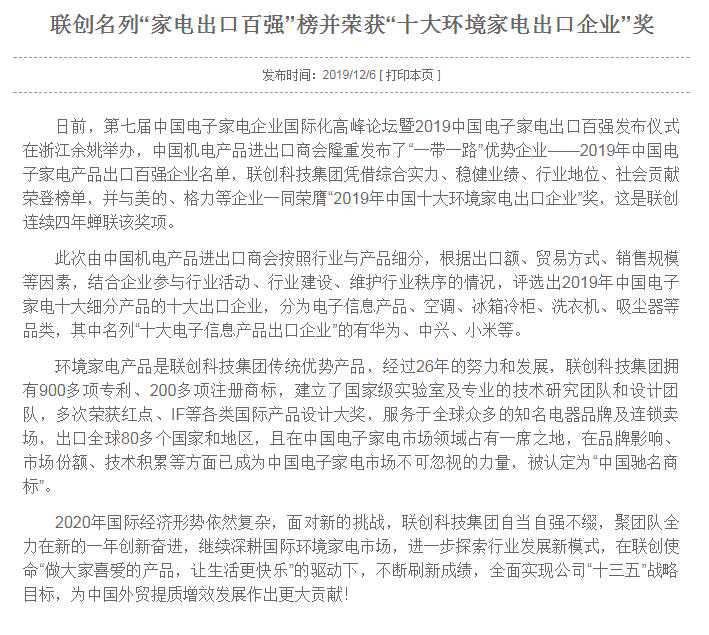 从目前的官方信息来看,联创本身依然拥有强大的研发和设计能力,在行业拥有相当的影响力与市场份额。