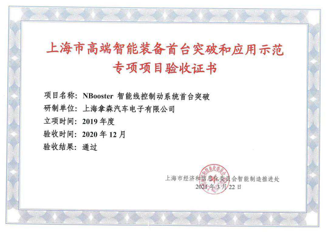 2018年,成立仅两年的拿森就实现了中国第一个电控制动助力系统NBooster批量投产。相比海外巨头的同类产品,NBooster提前半年在国内量产,被认定为“高端智能装备首台突破”,至今已经过三代技术迭代。
