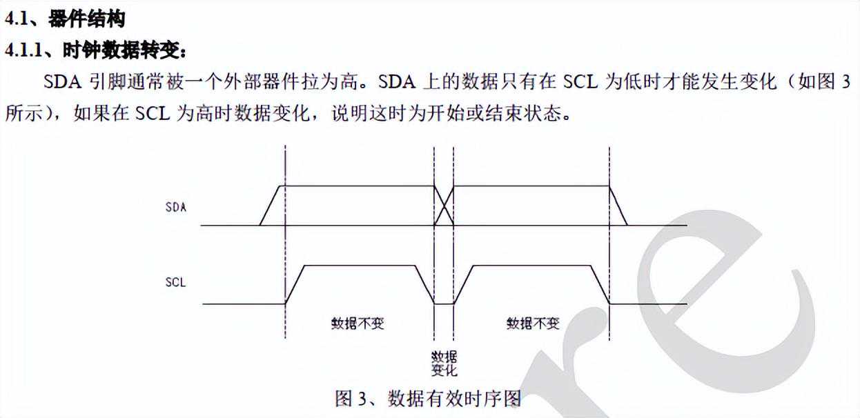 当SCL为高时SDA发生从低到高的转换,就产生了停止状态(如图4所示)。在进行了一系列的读操作后,STOP命令将会使EEPROM进入备用电源模式(standbypowermode)。