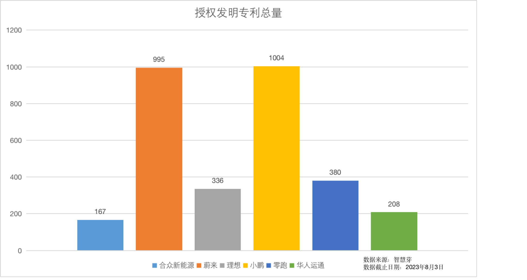 智慧芽数据显示,蔚来的专利申请量为6071个,领先小鹏汽车、理想汽车、零跑汽车等友商。