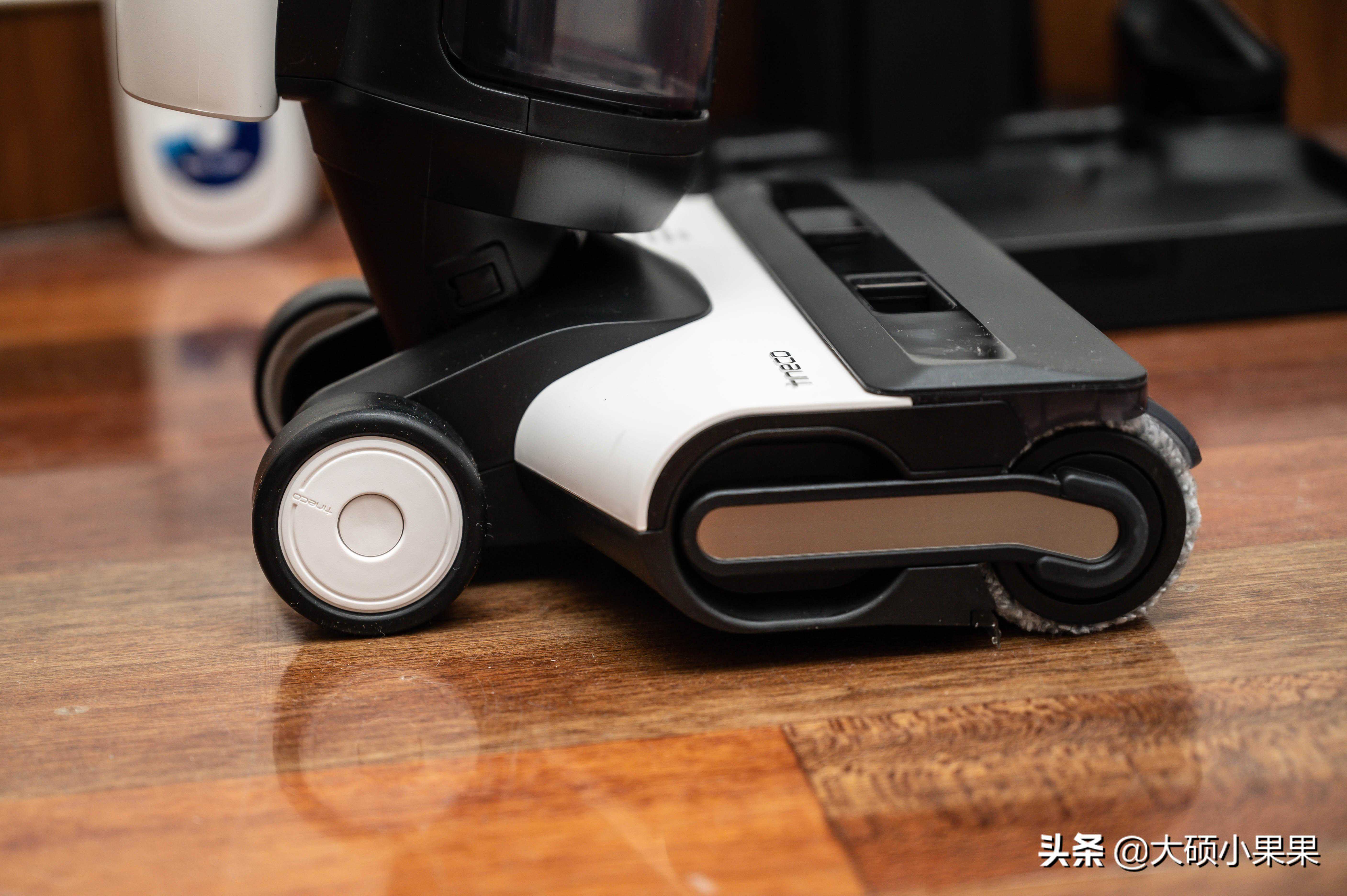 实际使用体验:在使用添可芙万2.0的过程中,合理的人体工学设计非常明显,通过滚刷后面的轮子就可以非常平滑的滚动,推起来很轻松。