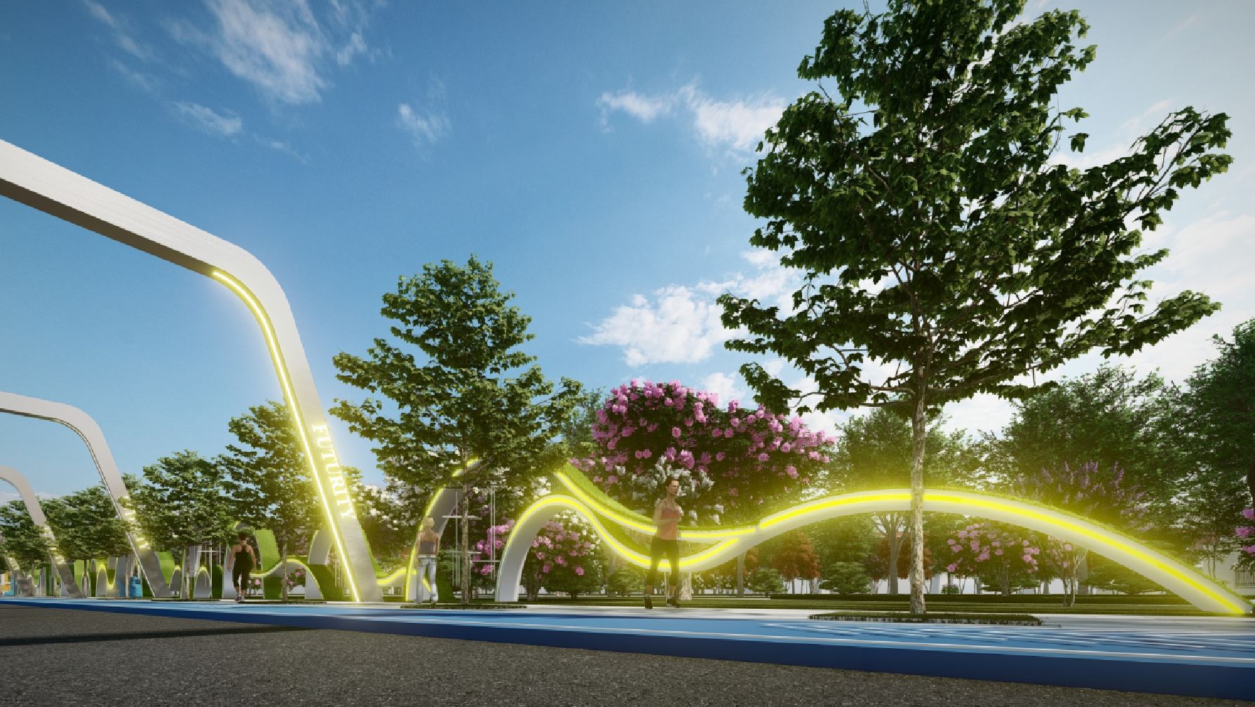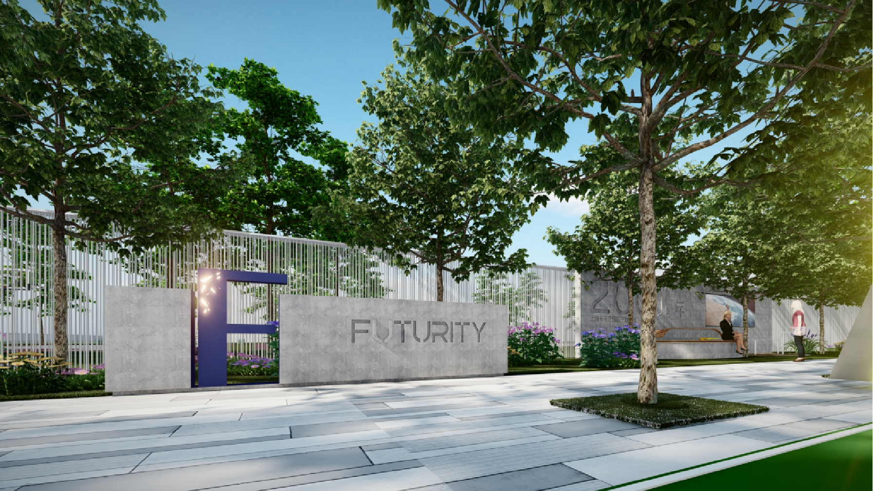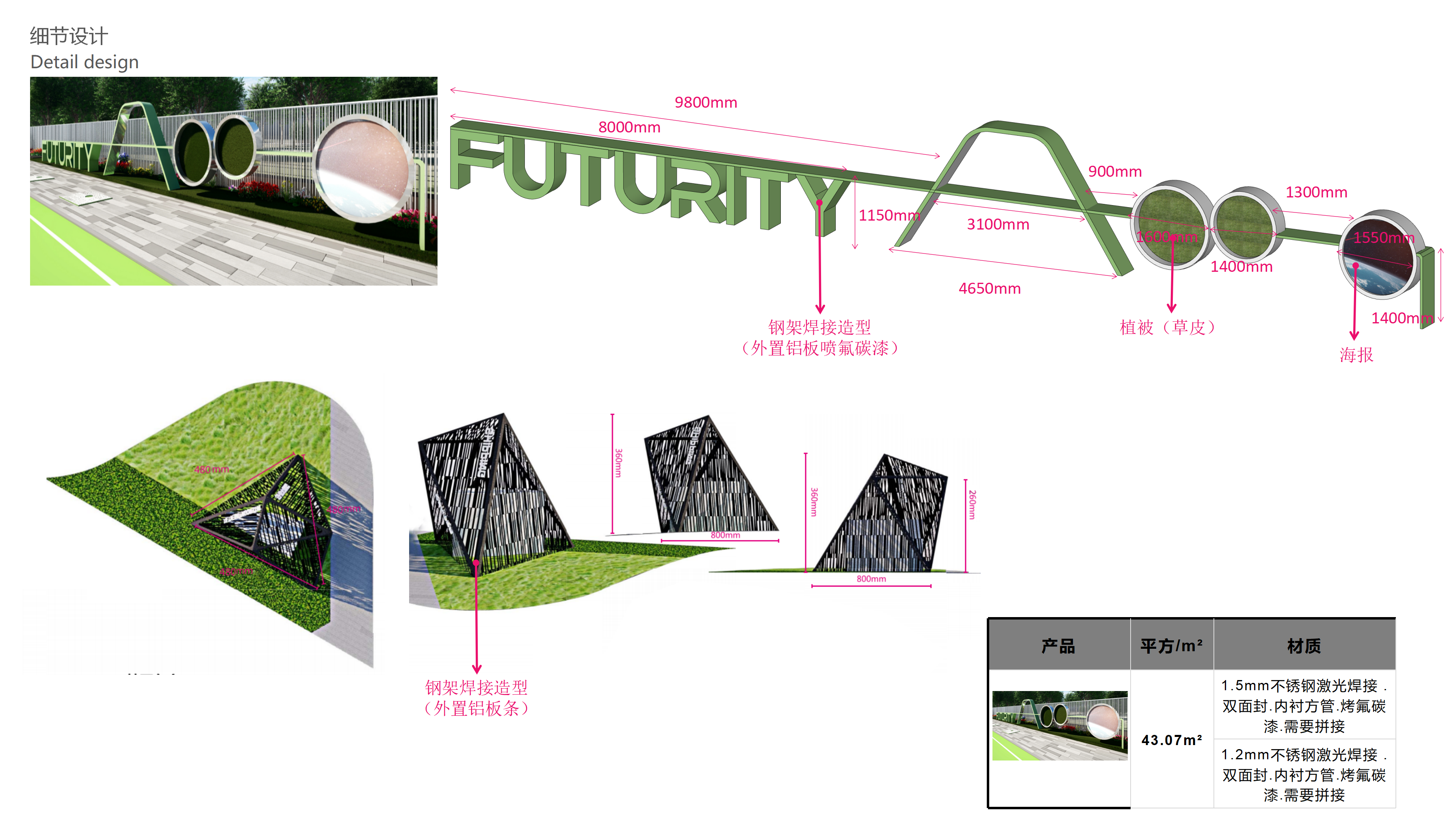 以时间为概念,将“一步一黄金”与企业发展历程以时间轴的形式展示,用科技元素将历史还原再现,以新型物流传输形式做引导,展现园区“以远见,赢未来”的真实文化内涵写照。
