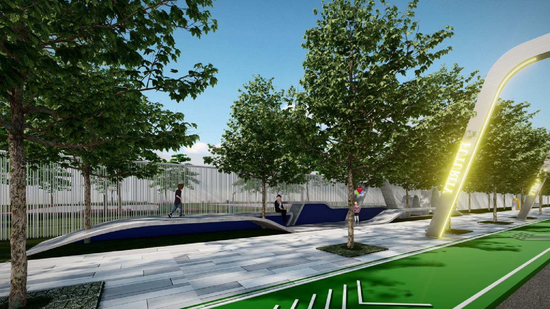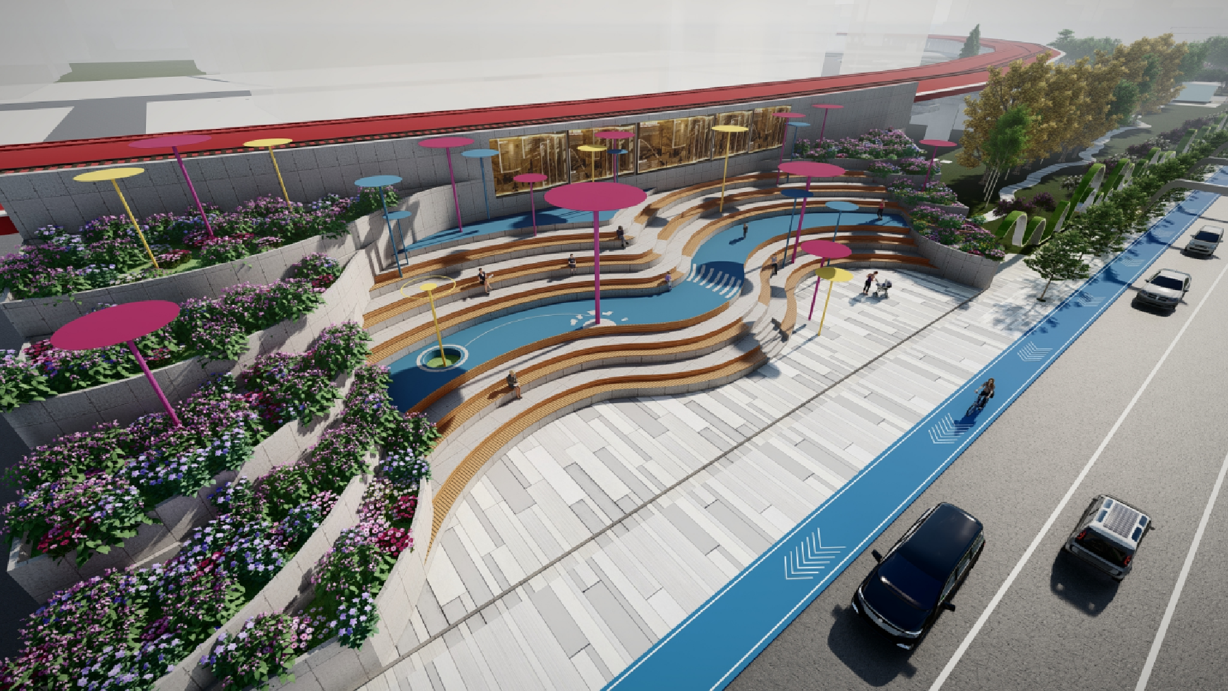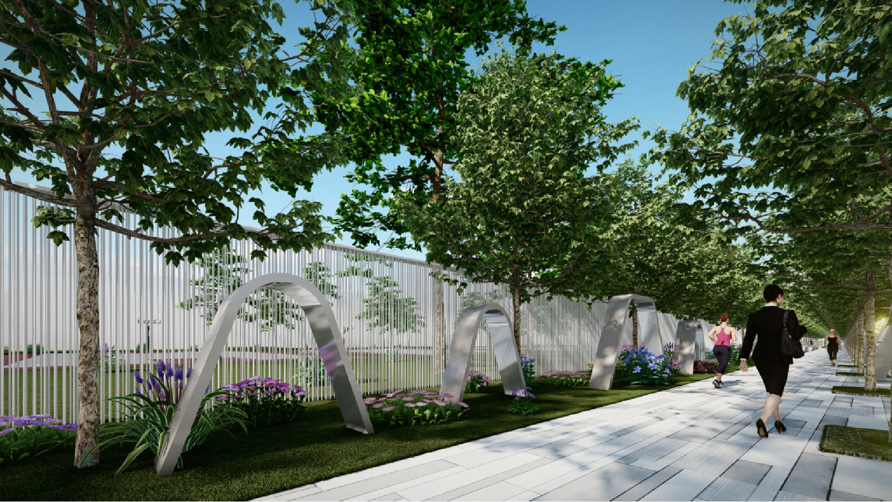 以时间为概念,将“一步一黄金”与企业发展历程以时间轴的形式展示,用科技元素将历史还原再现,以新型物流传输形式做引导,展现园区“以远见,赢未来”的真实文化内涵写照。