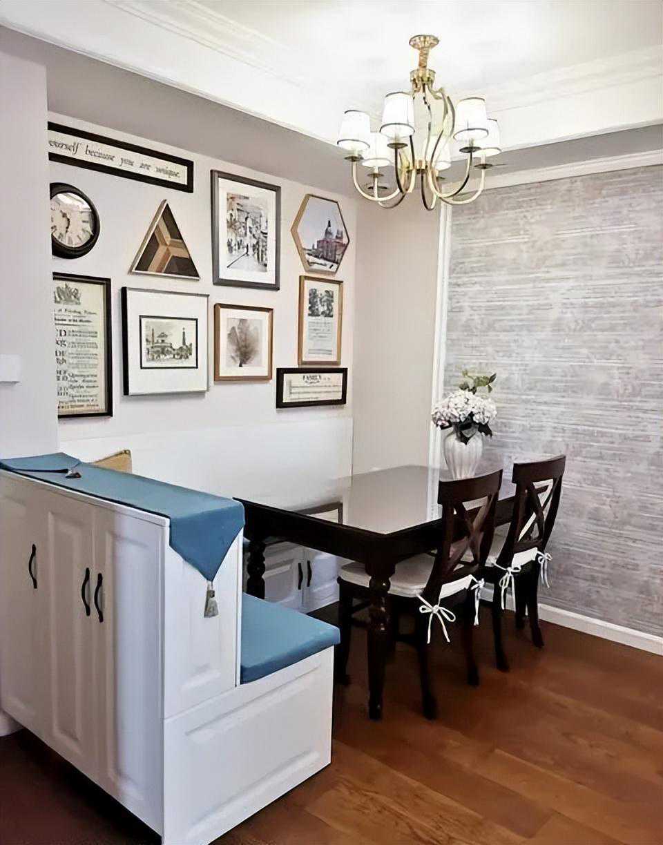 对于小户型房子而言,要使餐厅区域节省空间并营造整体客餐厅的宽敞通透感,巧妙利用客厅转角等闲置空间打造卡座是个绝佳选择。这样做不仅能有效节省室内空间,还能提升收纳功能,让小房子的客餐区焕发出更加宽敞大气的魅力。