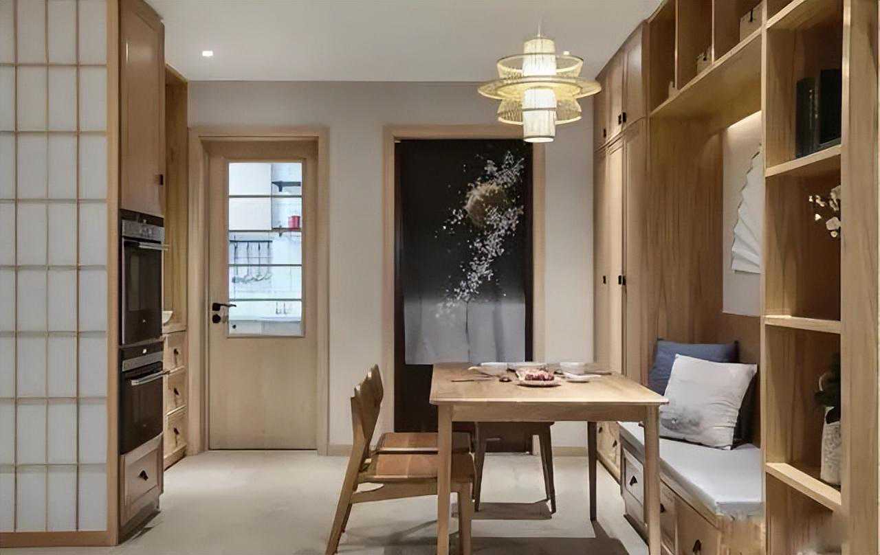 在小户型空间中,充分利用收纳空间显得尤为关键。巧妙利用卡座背景墙的立面空间,设计封闭式吊柜与开放格的组合,不仅具备强大的储物功能,还可作为餐边柜使用,为家中各类生活用品和餐厨用品提供充足的收纳空间。这一设计既实用又美观,有效提升了家居空间的利用率。