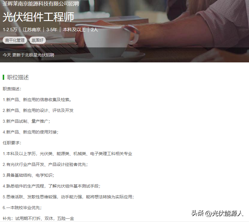 今天给大家分享的是圣晖莱南京能源科技有限公司的招聘信息!
