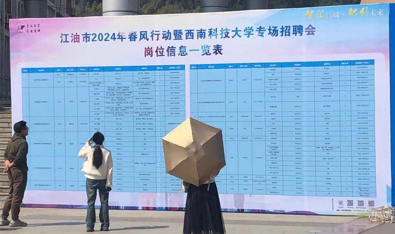 为促进高校毕业生多渠道充分就业,助力企业招才引智,3月28日,江油市2024年春风行动暨西南科技大学专场招聘会在西南科技大学青义校区东八广场举办。